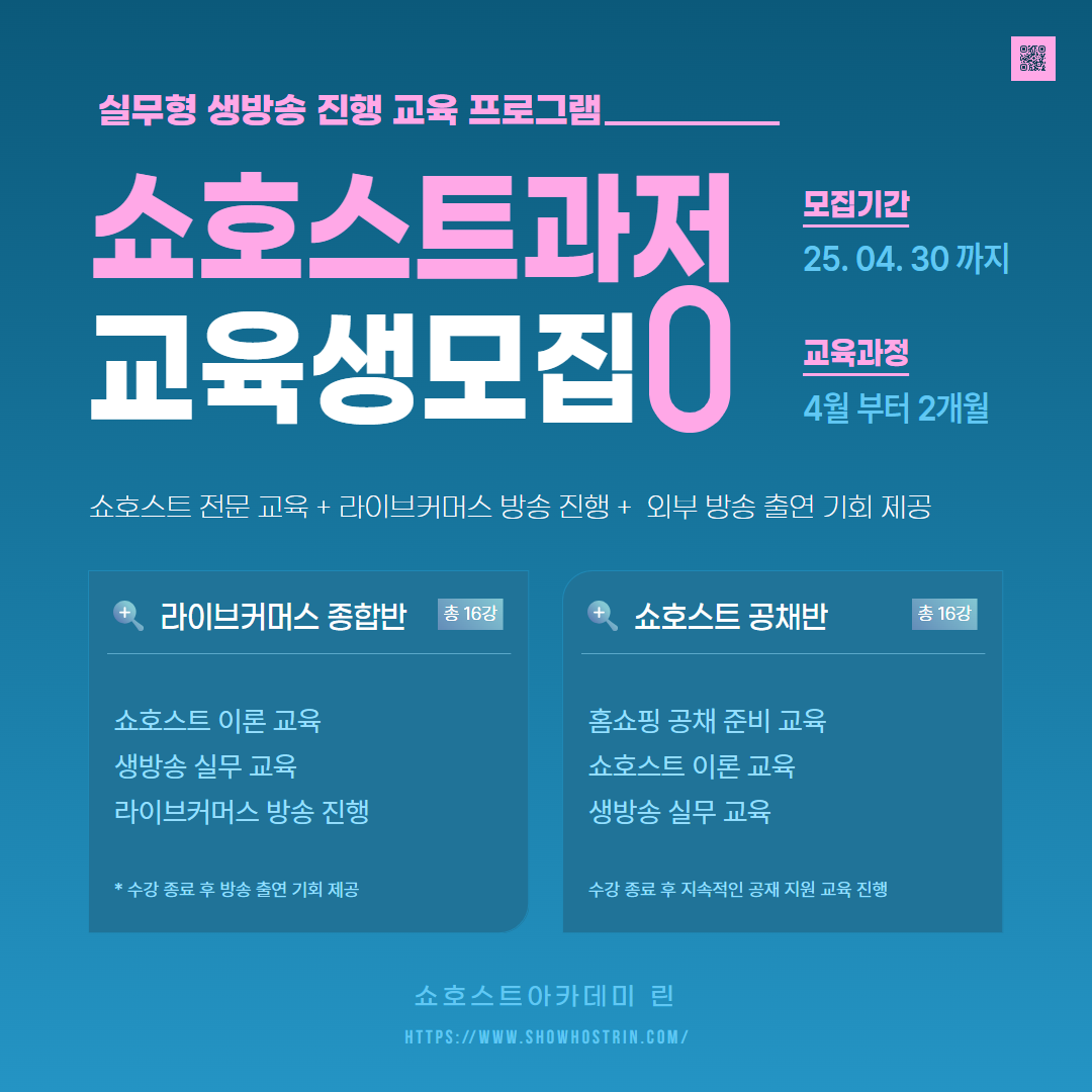 Community 공지사항 개강일정 Rin’s story 공지사항 개강일정 Rin’s story 개강일정 제목쇼호스트아카데미 린 4월 수강생 모집2025-04-07 18:21작성자관리자 목록답변 댓글 [0] 댓글작성자(*)비밀번호(*)자동등록방지(자동등록방지 숫자를 입력해 주세요)내용(*) 댓글 등록 더보기이전5월 수강생 모집관리자 2025-05-08다음2025년 3월 쇼호스트 모집 안내관리자 2025-03-03 Powered by MangBoard | 망보드 스토어